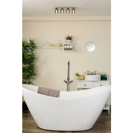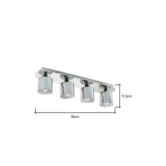 Dimensions (HW): 11.5 x 10cm. Weight: 1.35kg. Material: Metal. Electrical class I. Not suitable for use with dimmer switches. Bulb type: Maximum 3W G9. Number of bulbs required: 4 (not included). IP44 Rated. Remove light from fitting and wipe carefully with a clean, dry cloth. Requires self-assembly (instructions included)