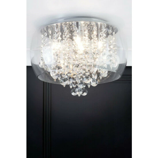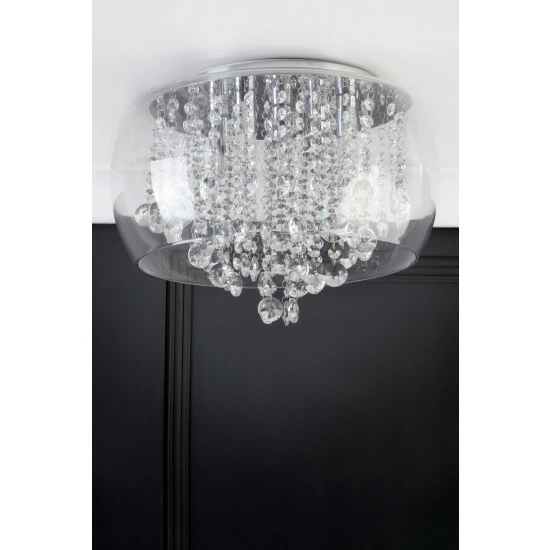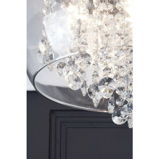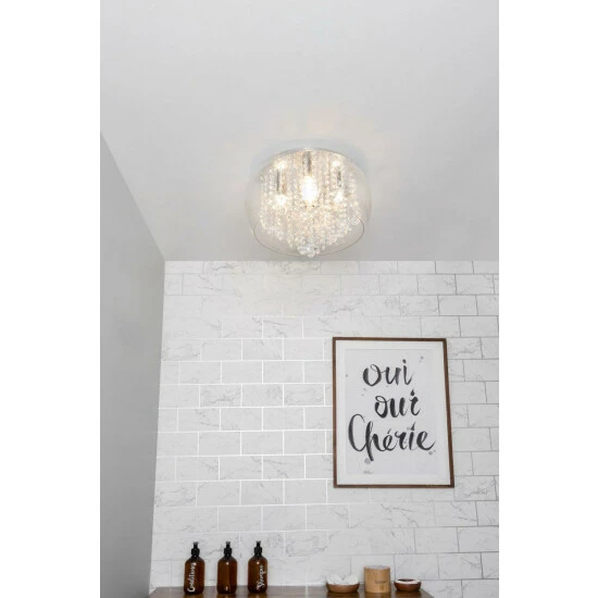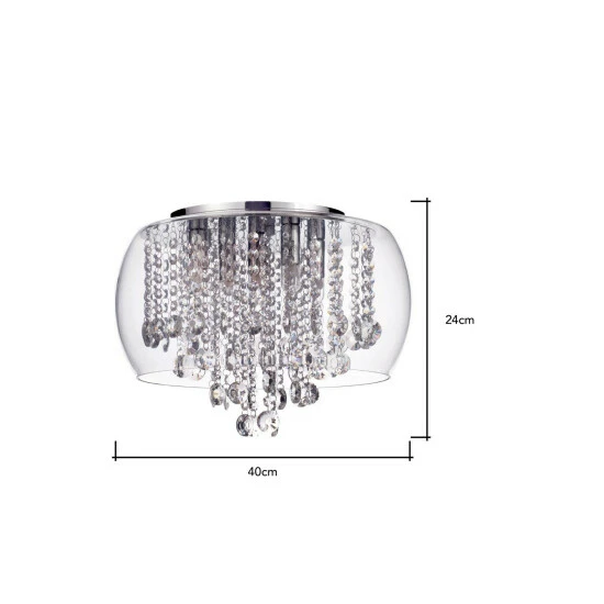 Dimensions (HD): 24 x 40cm. Weight: 7kg. Material: Metal. Not suitable for use with dimmer switches. Bulb type: Maximum 3W G9. Number of bulbs required: 5 (not included). IP44 Rated. Remove light from fitting and wipe carefully with a clean, dry cloth. Requires self-assembly (instructions included)