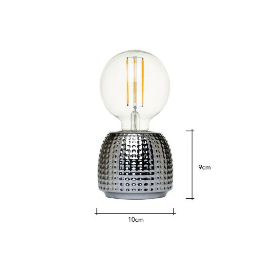 Dimensions (HW): 9 x 10cm. Weight: 0.8kg. Material: Metal. Not suitable for use with dimmer switches. Max Wattage: 6 Watt. Bulb type: E27. Requires self-assembly (instructions included).
