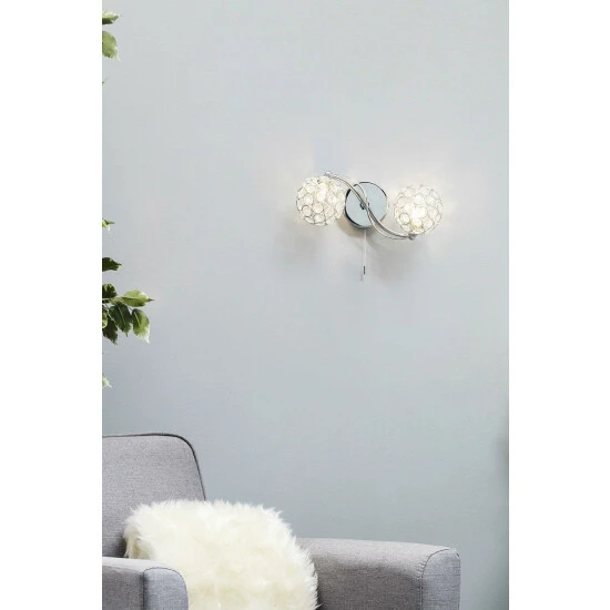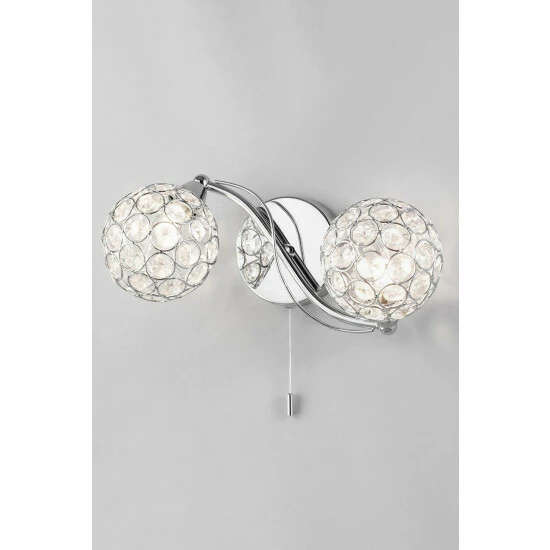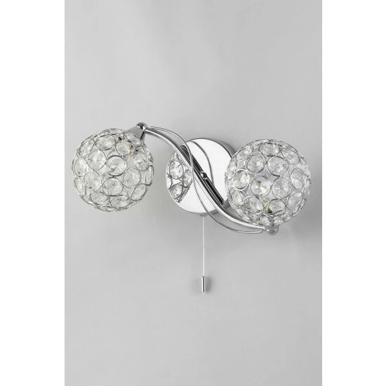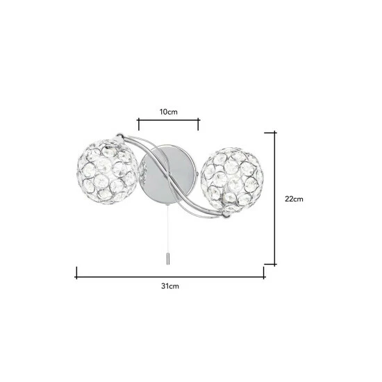 Dimensions (HWL): 22 x 31 x 14cm. Weight: 1kg. Material: Metal with Chrome finish. Electrical class I. Not suitable for use with dimmer switches. Bulb type: Maximum 3W G9. Number of bulbs required: 2 (not included). Remove light from fitting and wipe carefully with a clean, dry cloth. Requires self-assembly (instructions included). Includes 2 year warranty