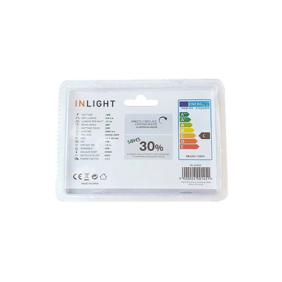 Wattage: 18W. Lumens: 216lm. Kelvins: 2700K Warm White. G9 Capsule Halogen Bulb. Energy rating: C. Suitable for use with dimmer switches. Fitting: G9. Clear finish. 18 pack.