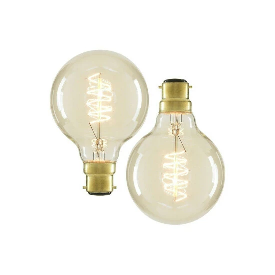 Wattage: 40W. Lumens: 140lm. Kelvins: 2700K Warm White. B22 Bayonet Cap Globe Incandescent Bulb. Energy rating: F. Suitable for use with dimmer switches. Fitting: B22. Clear finish. 2 pack.
