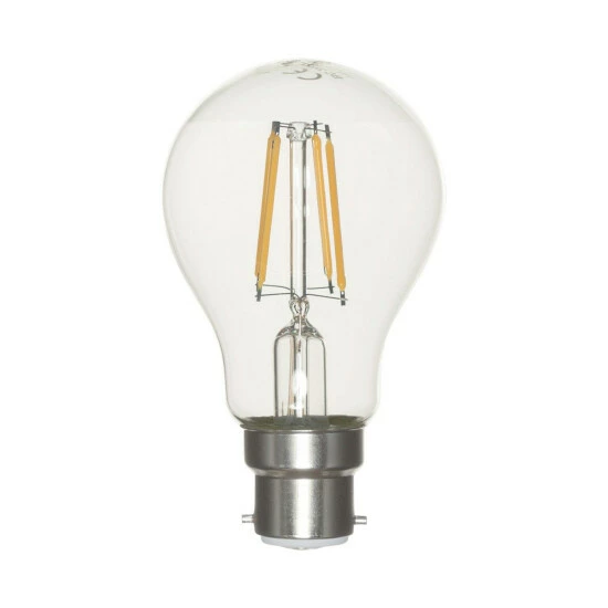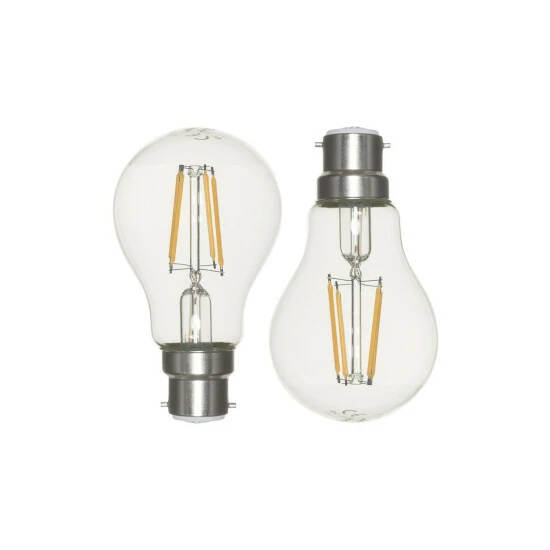 Wattage: 6W. Lumens: 500lm. Kelvins: 4000K Natural White. B22 Bayonet Cap LED Bulb. Energy rating: A++. Suitable for use with dimmer switches. Clear finish. 2 pack.