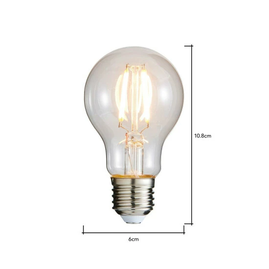 Wattage: 6W. Lumens: 500lm. Kelvins: 4000K Natural White. E27 Edison Screw LED Bulb. Energy rating: A++. Suitable for use with dimmer switches. Clear finish. 2 pack.