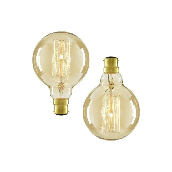 Wattage: 40W. Lumens: 120lm. Kelvins: 2700K Warm White. B22 Bayonet Cap Globe Incandescent Bulb. Energy rating: F. Suitable for use with dimmer switches. Fitting: B22. Tinted finish. 2 pack.