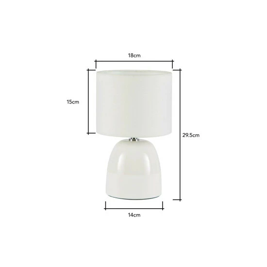 Dimensions (HD): 29.5 x 18cm. Weight: 0.96kg. Material: Ceramic, Glass. Bulb type: Maximum 6W E14 Small Edison. Number of bulbs required: 1 (not included). Remove light from fitting and wipe carefully with a clean, dry cloth. Requires self-assembly (instructions included)