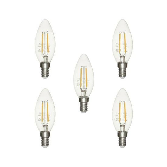Wattage: 4W. Lumens: 400lm. Kelvins: 4000K Natural White. E14 Small Edison Screw Candle LED Bulb. Energy rating: A++. Suitable for use with dimmer switches. Clear finish. 5 pack.