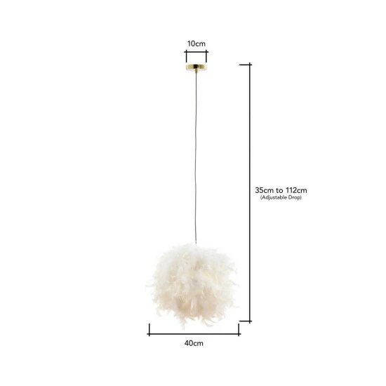 Dimensions (D): 40cm. Adjustable cable length of up to: 112cm. Weight: 0.8kg. Material: Metal. Electrical class I. Not suitable for use with dimmer switches. Bulb type: Maximum 40W E27 Edison Screw. Number of bulbs required: 1 (not included). Remove light from fitting and wipe carefully with a clean, dry cloth. Requires self-assembly (instructions included). Includes 2 year warranty