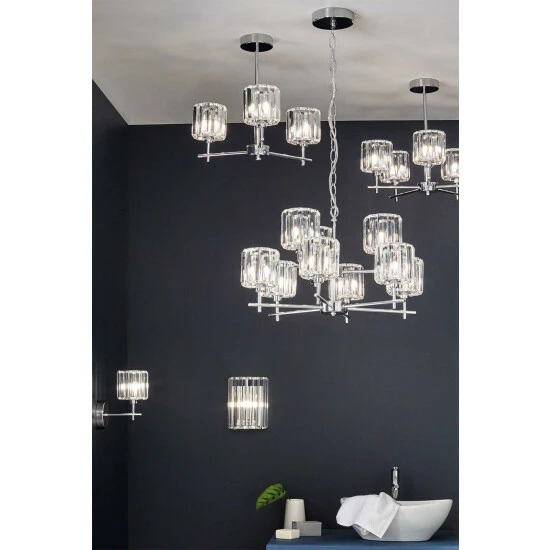 Dimensions (HW): 20 x 16cm. Weight: 1.25kg. Material: Chrome. Electrical class I. Not suitable for use with dimmer switches. Bulb type: Maximum 18W G9. Number of bulbs required: 1 (not included). IP44 Rated. Remove light from fitting and wipe carefully with a clean, dry cloth. Requires self-assembly (instructions included).