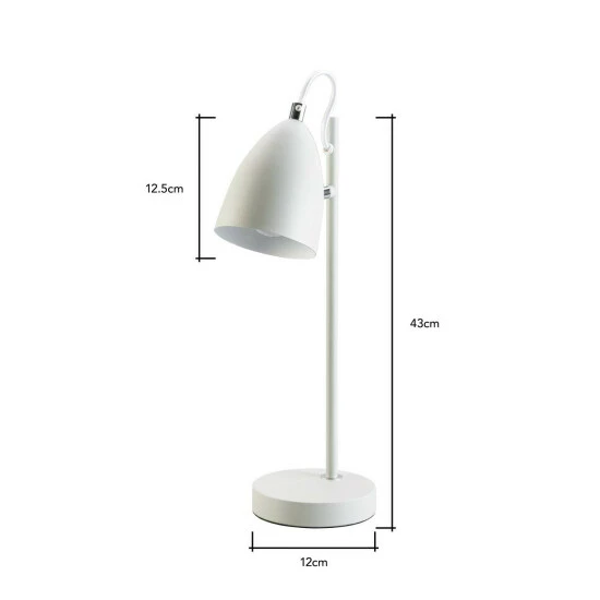 Dimensions (HWL): 43 x 17 x 12cm.Material: Metal.Bulb type: Maximum 6W E14 Small Edison Screw.Number of bulbs required: 1 (not included).Remove light from fitting and wipe carefully with a clean, dry cloth.