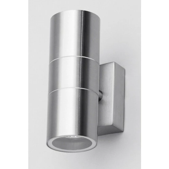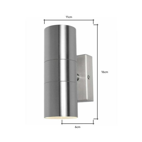 Dimensions (HDW): 16 x 6 x 6cm. Weight: 0.66kg. Material: Metal. Electrical class I. Not suitable for use with dimmer switches. Bulb type: Maximum 8W GU10. Number of bulbs required: 2 (not included). IP44 Rated. Remove light from fitting and wipe carefully with a clean, dry cloth. Requires self-assembly (instructions included). Includes 1 year warranty