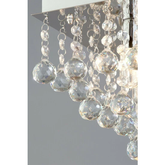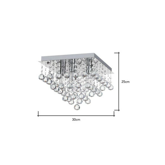 Dimensions (HL): 25 x 30cm. Weight: 4.8kg. Material: Metal. Electrical class I. Bulb type: Maximum 28W G9. Number of bulbs required: 5 (not included). IP44 Rated. Remove light from fitting and wipe carefully with a clean, dry cloth. Requires self-assembly (instructions included). Includes 2 year warranty