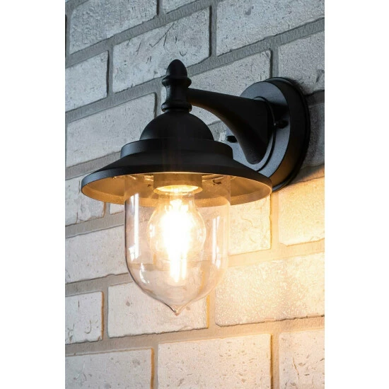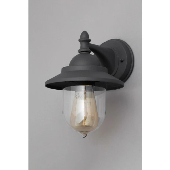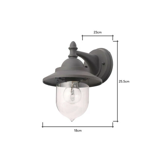 Dimensions (HW): 25.5 x 18cm. Weight: 0.75kg. Material: Metal. Electrical class I. Not suitable for use with dimmer switches. Bulb type: Maximum 10W E27 Edison Screw. Number of bulbs required: 1 (not included). IP44 Rated. Remove light from fitting and wipe carefully with a clean, dry cloth. Requires self-assembly (instructions included).