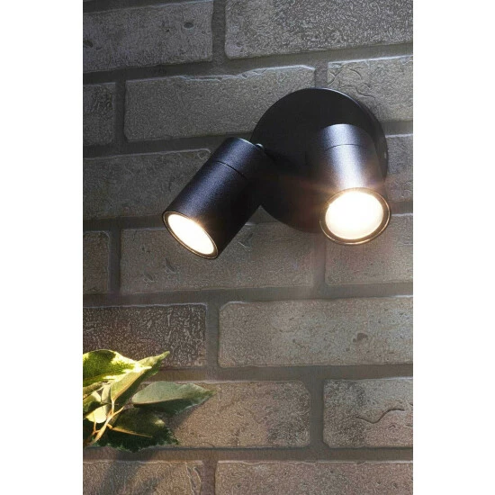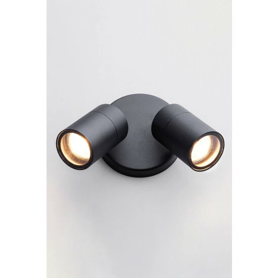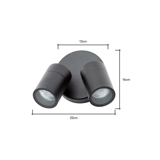 Dimensions (HDW): 16 x 6 x 22cm. Weight: 0.94kg. Material: Metal. Electrical class I. Not suitable for use with dimmer switches. Bulb type: Maximum 8W GU10. Number of bulbs required: 2 (not included). IP44 Rated. Remove light from fitting and wipe carefully with a clean, dry cloth. Requires self-assembly (instructions included)