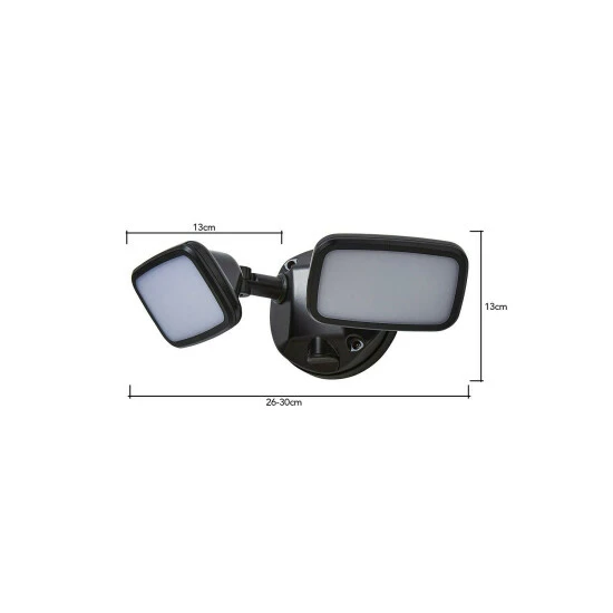 Dimensions (HW): 13 x 26 – 30cm.Weight: 0.66kg.Material: Metal.Not suitable for use with dimmer switches.Bulb type: LED Integrated.IP65 Rated.Remove light from fitting and wipe carefully with a clean, dry cloth.Requires self-assembly (instructions included)