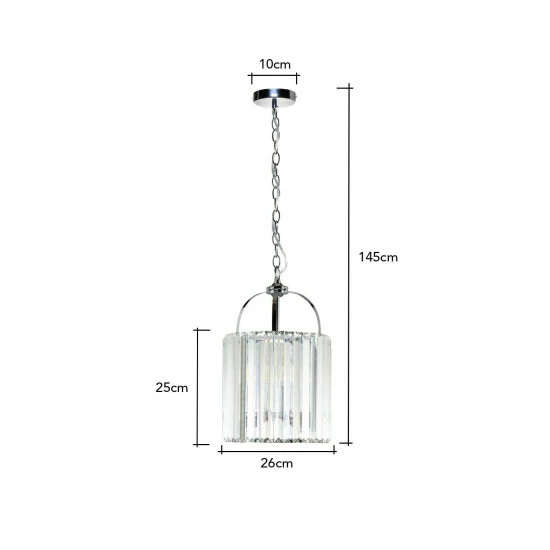 Dimensions (HW): 145 x 26cm. Weight: 4.8kg. Material: Metal / Glass. Not suitable for use with dimmer switches. Max Wattage: 6 Watt. Bulb type: E14. Requires self-assembly (instructions included).